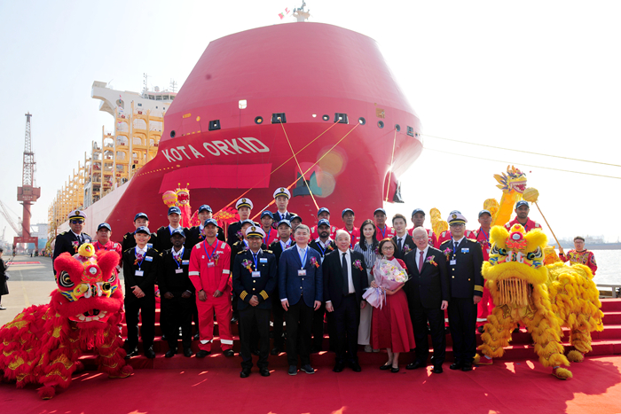 11月4日上午,我集團(tuán)新?lián)P子造船為新加坡太平船務(wù)(PIL)建造的第四艘8200TEU薄膜型LNG雙燃料集裝箱船“KOTAORKID”輪解纜離開(kāi)船…